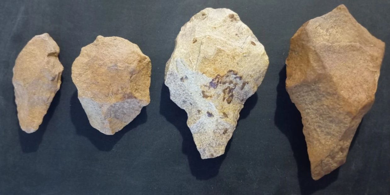 A misunderstanding by a grader operator resulted in the unearthing of a possible early stone age tool making site where numerous Acheulean hand axes and more were found. Also found were several shaped stones – and some shapes as part of a tool.